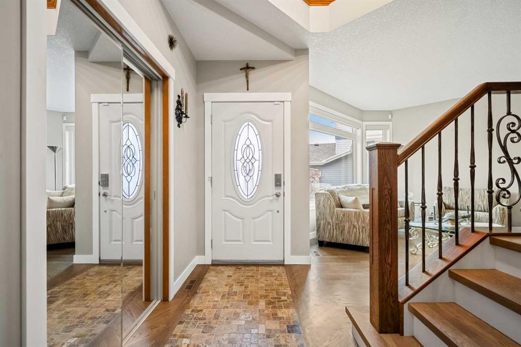 Includes: Refrigerator, Stove top, Wall oven, microwave, hood fan, all window coverings, dish washer, washer, dryer, pedestals for washer and dryer, vacuflo with accessories, 2 hoses, alarm system. Site Influences: Corner Lot, Lake, Pie Shaped Lot Property InformationProperty Type: Residential Detached Single Family Home Style: 2 Storey Year Built: 1997 Total Floor Area: 2,531 sq. ft. Brokerage: Real Broker Listed Date: Please login or create an account Community InformationCity/Town: Calgary Community: Chaparral ExteriorLot Size: 0.17 sq.ft. Lot Shape: Corner Lot,Lake,Pie Shaped Lot Exterior: See Remarks Construction: See Remarks Frontage: 16.76M 55`0" Front Exposure: NW Roof: Asphalt Parking: Double Garage Attached Total Parking: 4 InteriorHeating: Forced Air Basement: Full Floor Finish: Hardwood Fireplace Details: For Sale RoomsTotal Bedrooms: 4 (Bedrooms Above: 3) Bathrooms: Full: 3 / Half: 1 Above Grade: 8 Legal, Financial & PossessionZoning: R-G Legal Description: Lot/Unit: Lot/Unit:,Plan: 9712487,Block: Tax: 7045.55 Possession: 45 days / Neg Occupancy: Tenant Restrictions: Restrictive Covenant,Underground Utility Right of Way Listing Courtesy of Real Broker The data included in this display is deemed to be reliable, but is not guaranteed to be accurate by the Calgary Real Estate Board. MLS®: A2294680 - Chaparral 2 Storey $1,199,900